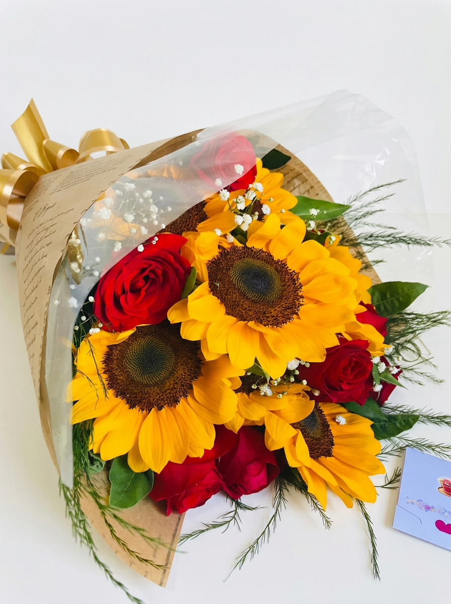 Buquê Girassol e Rosas - Uma escolha irresistível para presentear